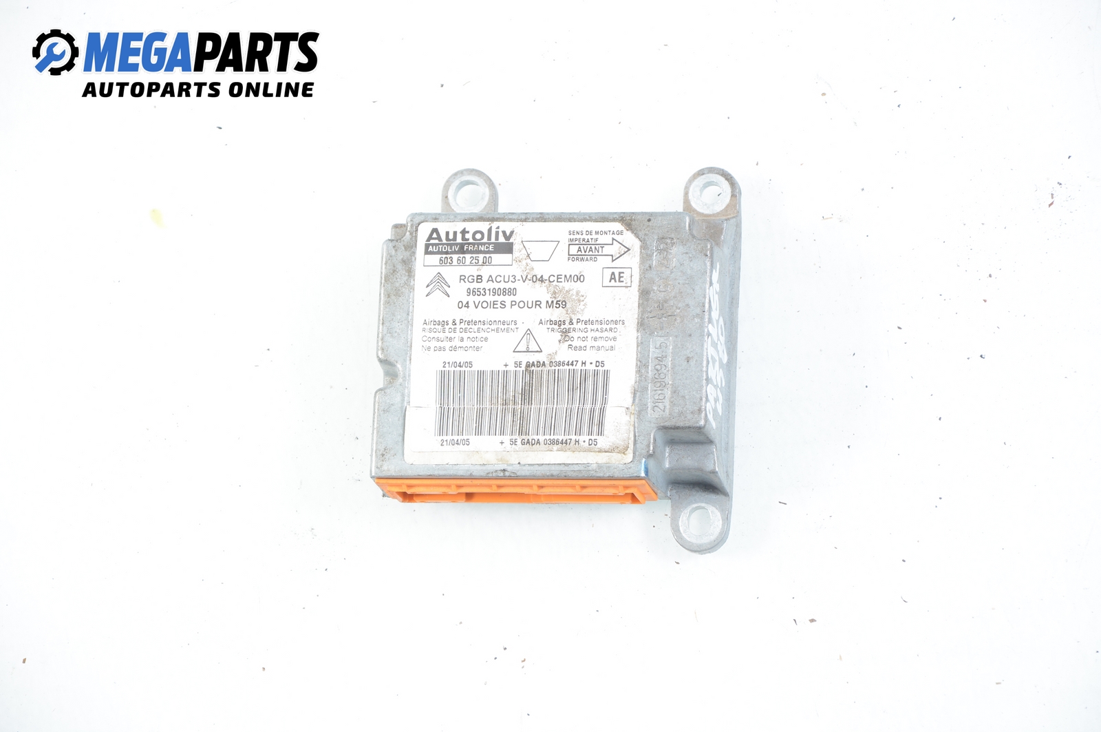 Airbag module for Peugeot Partner 1.9 D, 69 hp, 2005 № Autoliv 603 60 25 00