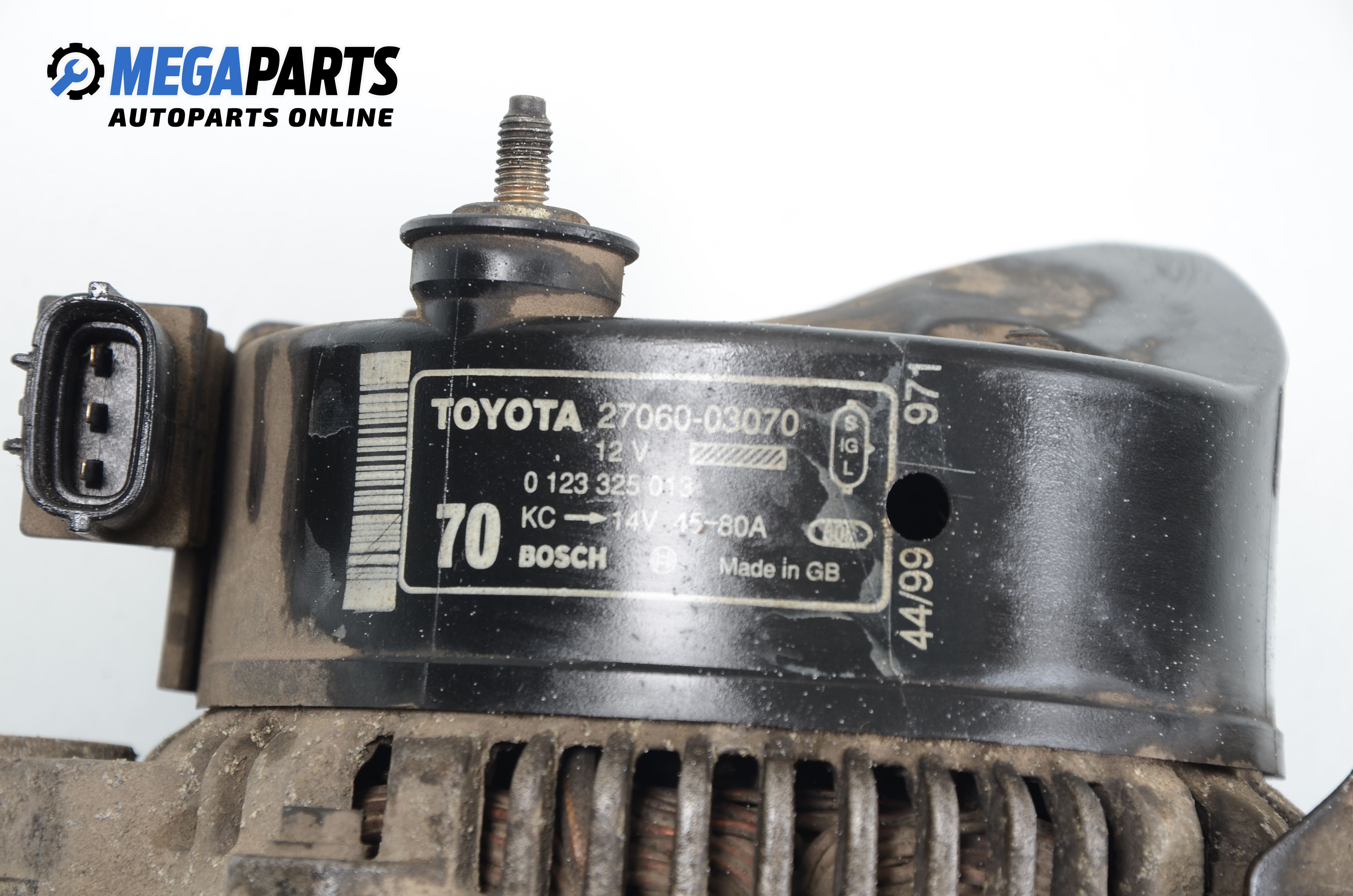 Alternator for Toyota Avensis 2.0, 128 hp, sedan, 2000 № Bosch 0 123 325 013
