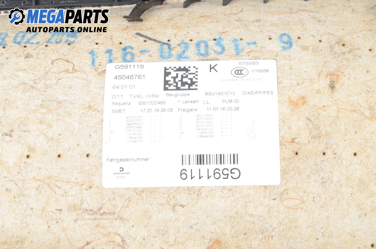 Panou interior ușă for BMW 7 Series G11 (07.2015 - ...), 5 uși, sedan, position: dreaptă - spate, № 45046761 / G591119